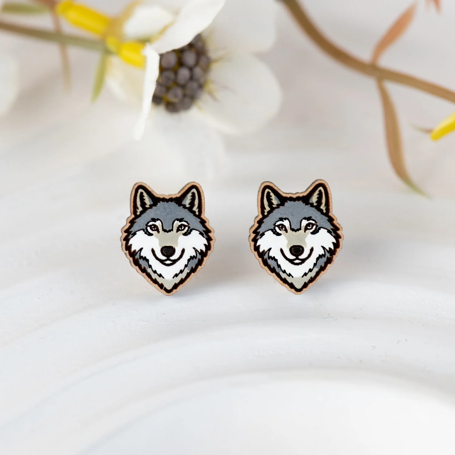 GREY WOLF STUD EARING